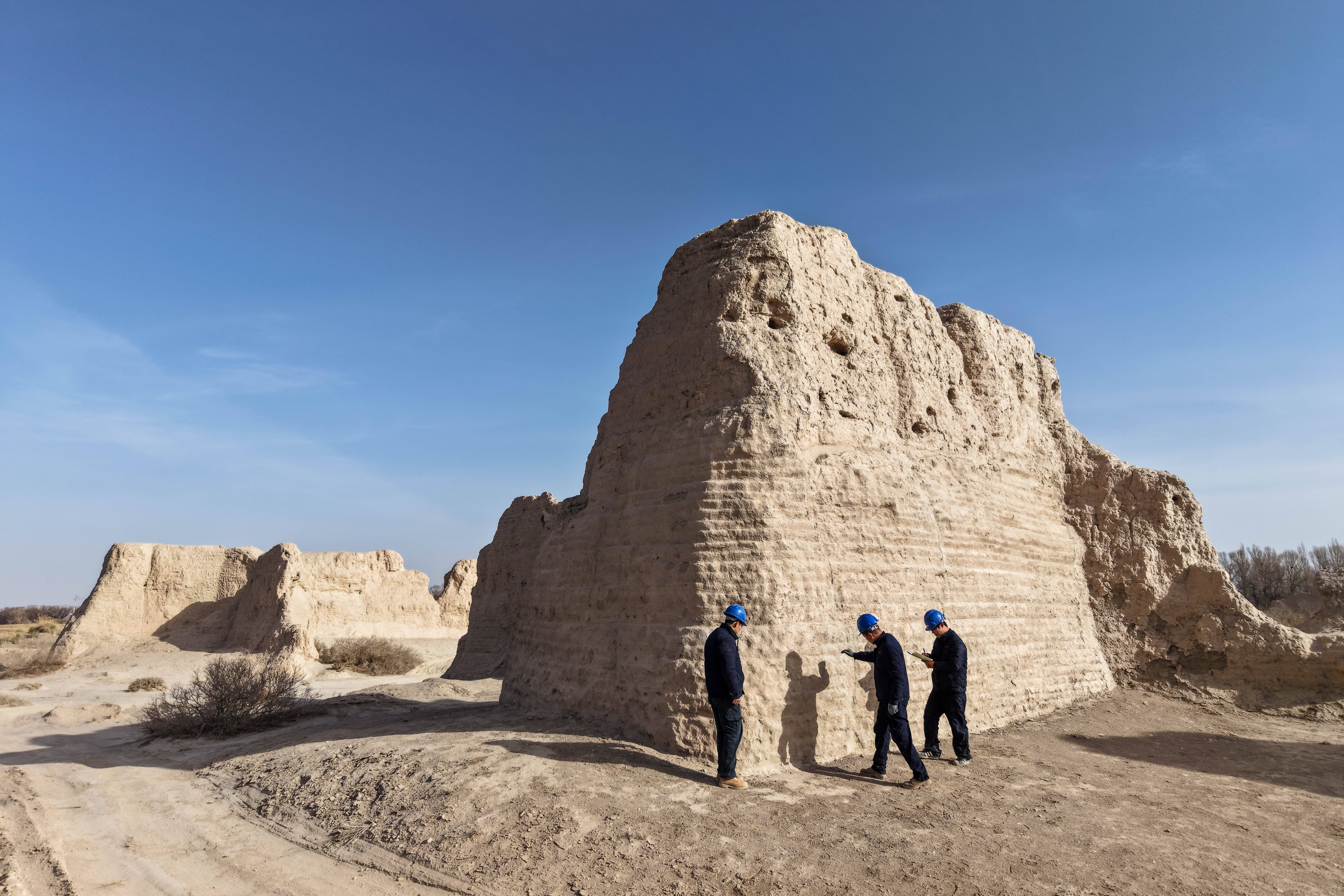 2022年,破城子遗址保护维修工程(二期)再获国家文物局批复,敦煌研究院文物保护技术服务中心于2024年3月中标后迅速组织施工。