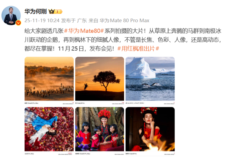 更为重磅的是,华为在短片上线后打出了一套“组合拳”:正式官宣第二代红枫影像,并密集释放了由华为Mate 80系列拍摄的长焦微距慢动作视频与华为终端BG首席执行官何刚分享的多组实拍样张。这一系列动作,强烈预示着华为Mate 80系列将首发搭载该影像技术,实现影像实力的全面飞跃,以此树立移动影像新标杆。